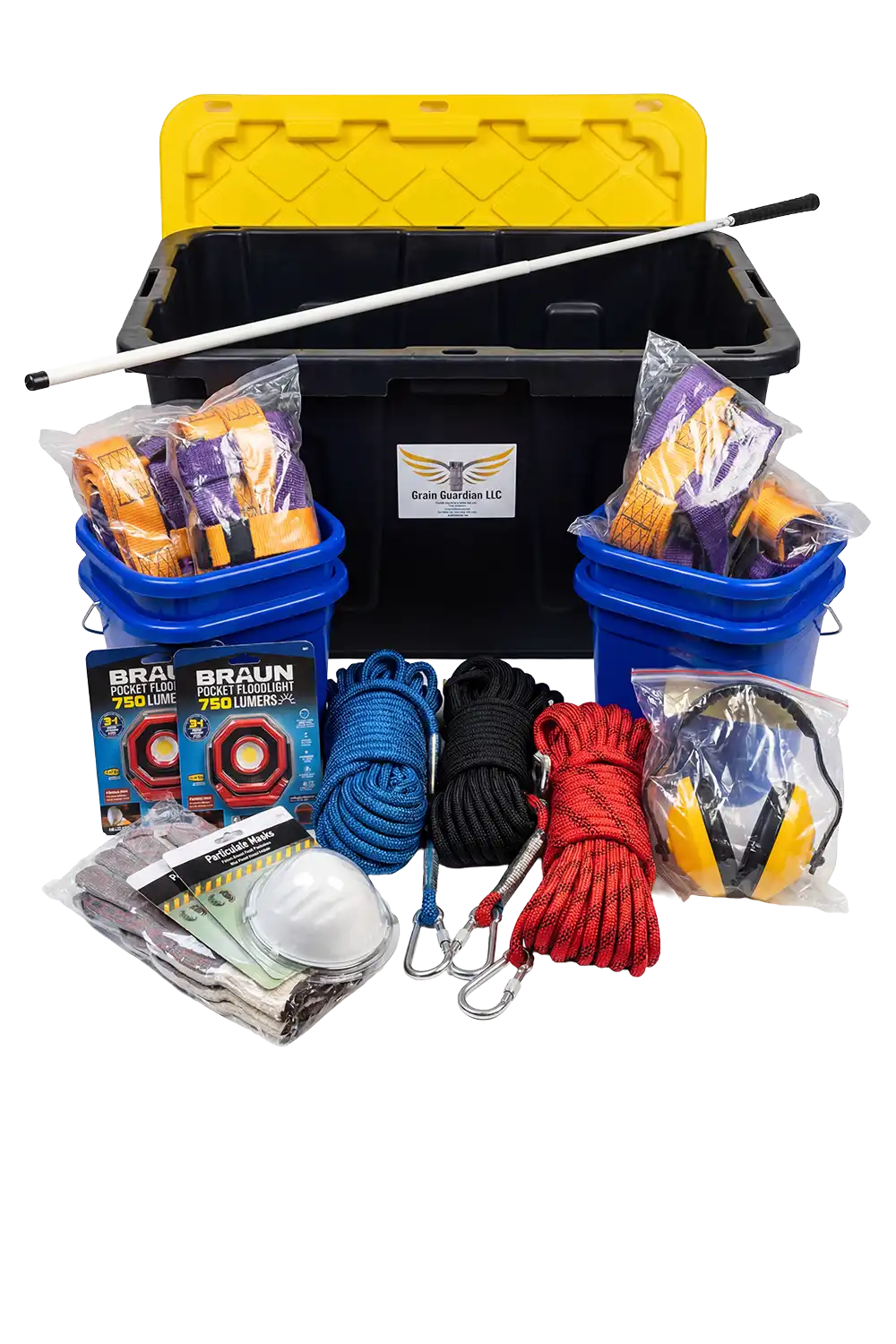 The R3 Grain Rescue Trailer is engineered to enhance the efficiency of fire and rescue departments by providing specialized tools for grain bin rescues. This comprehensive rescue package includes the R3 Grain Rescue Trailer, a Grain Rescue Vac, and 185 feet of piping.